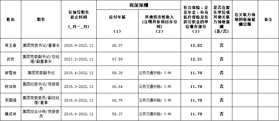 按照黑龙江省国资委《黑龙江省国资委出资企业负责人薪酬管理办法》黑国资分〔2016〕202号文件精神,九州网页版-九州(中国)有限公司对由省国资委管理的集团领导班子成员2022年度薪酬信息向社会披露如下。