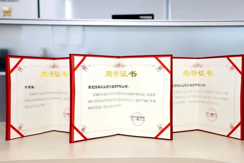 2021年12月,农投集团被中国文化管理协会授予“2021年度新时代党建+企业文化 先进单位”,集团形象宣传画册获得“第八届最美企业之声”最美品牌代言作品奖。