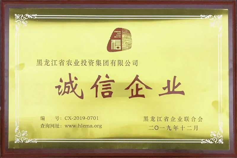 2019年12月11日下午,由黑龙江省企业联合会主办的2019黑龙江省推进企业诚信建设大会在哈召开,农投集团被授予“诚信企业”荣誉称号。