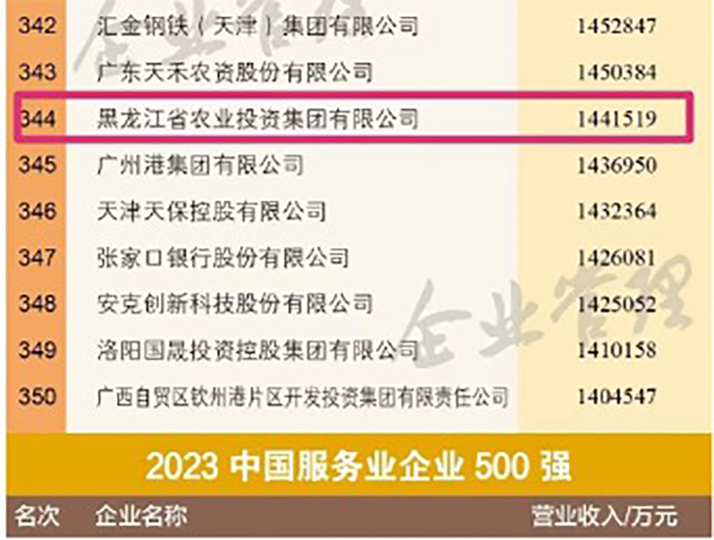2023年9月20日,中国企业联合会、中国企业家协会发布“2023中国服务业企业500强”榜单,九州网页版-九州(中国)有限公司(以下简称“农投集团”)连续三年荣登“中国服务业企业500强”,以144亿元的营业收入,位列“2023年中国企业500强”第344位,位次较2022年度上升24位!