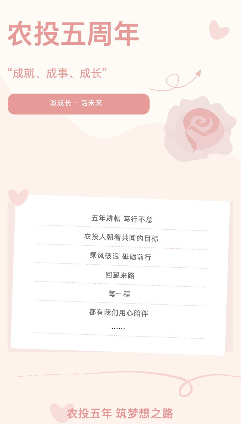 耕耘五载,砥砺前行,在过去的五年里,农投集团定战略、谋发展、战疫情、强品牌,站稳百亿企业台阶,履行了农投责任,展现了农投担当,“明德、奋斗、创新、卓越”的企业核心价值观,不仅引领着企业的发展方向,也塑造着每一位员工的精神风貌。在集团党委的正确领导下,全体员工共同努力,不断追求卓越,为实现企业的宏伟目标贡献着自己的力量。未来,我相信集团将继续保持高质高效高速的发展态势,牢牢把握总书记赋予龙江的战略定位,全面践行“让龙江农民更幸福,让龙江农业更强大,让龙江农产品更有市场竞争力”的使命愿景,为龙江农业强省建设贡献农投力量!