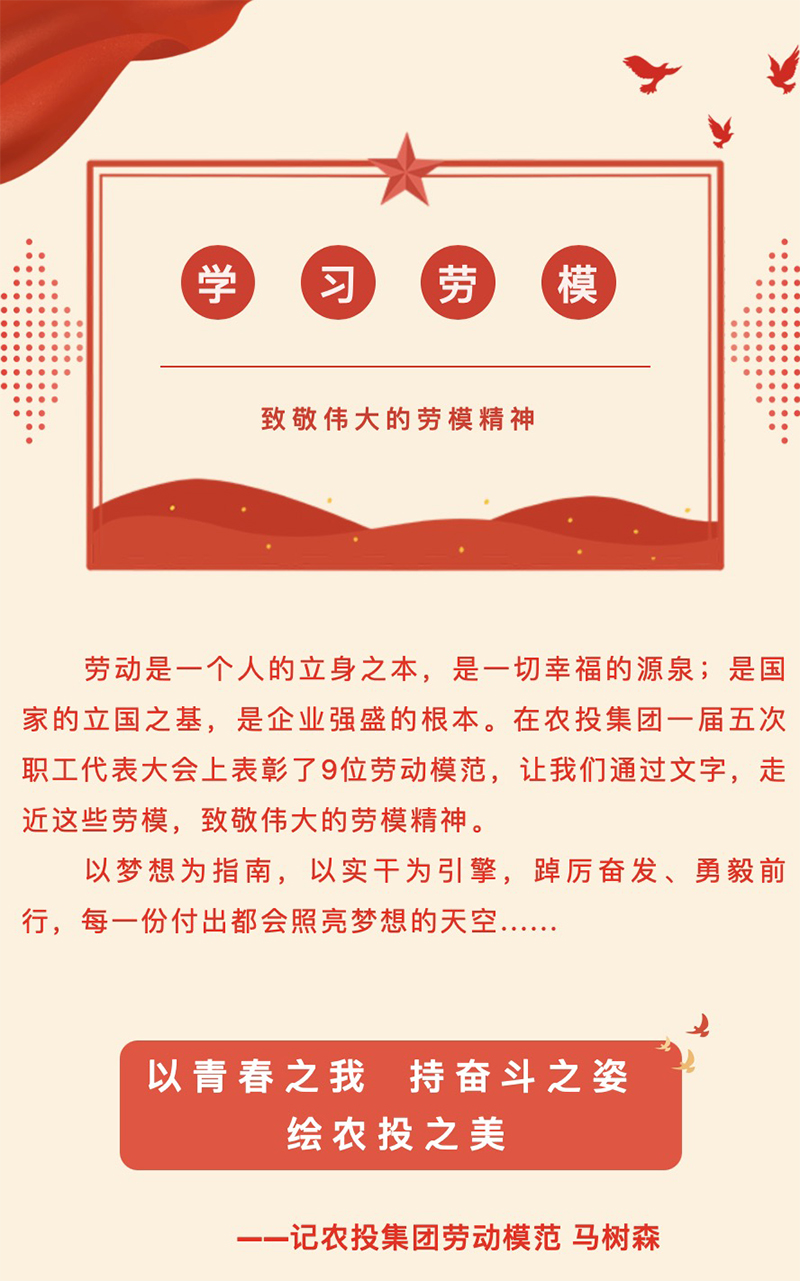 沁园春·创业记 已亥初春,冰雪渐融,金谷破土。 闯中华大地,前路漫漫;虎狼环伺,围追截堵。 龙江农投,勇挑重担,纵使艰辛不言苦。 举旗帜,谋幸福使命,大展宏图。 此间风华正茂,四大粮商又有何惧。 定六大板块,群贤毕至;文化筑魂,基夯本固。 脚踏黑土,仰望星空,农业强省是前路。 看今朝,抗新冠得胜,再起征途。 这是马树森在农投集团企业日写下的《沁园春·创业记》,一直以来他时刻保持着这股创业的精气神,敢拼敢闯敢干,不畏惧不气馁不抱怨,在平凡的岗位上创不凡,在普通的工作中干出彩,成为农投青年人学习的榜样。 纵使艰辛不言苦 “明德、奋斗、创新、卓越”是农投集团的核心价值观,马树森坚定践行着。他以明德立身,保持拼搏奋斗的干劲,创新工作方式方法,最终在平凡的岗位上创造不凡的业绩,将农投核心价值观内化于心,外化于行。 对未来的真正慷慨,是把一切奉献给现在。无论是在集团总部工作,还是在农投产融公司工作,“敬业”是马树森身上最大的标签。他每天7点到公司,晚上9点左右下班,几乎一周工作7天,“797”是他工作状态的真实写照。有同事看在眼里,劝他休息休息,“农投优秀的人太多了,需要我学习的太多了,看到领导和同事这么拼命,我们怎么能不努力”,这是他给出的回答。因为他始终牢记:勤能补拙,用敬业弥补专业不足;用努力弥补能力不足。不用扬鞭自奋蹄,主动自我加压,以满腔热情和实际工作诠释着一个共产党员的荣耀使命和无私奉献,为的就是尽快提升自己,适应农投集团高质量发展的需要,跟上农投集团高速度发展的脚步。 此间风华正茂 任职黑龙江省农投产融公司副总经理、黑龙江省鲜玉良田农业发展有限公司总经理以来,马树森深耕一线,积极践行大食物观,在黑龙江省布局鲜食玉米基地10万亩,经营鲜食玉米超亿穗,打造农投集团鲜食玉米生态圈,推动了鲜食玉米产业发展。 他是农投集团的一块“砖”,哪里需要哪里搬!2023年初,为落实集团两疆(江)鲜食玉米项目一体化运营要求,按照农投集团和产融公司工作安排,他告别父母、妻子与两个孩子,率队前往边疆艰苦地区推动鲜食玉米产业援疆项目发展。初到鲜食玉米项目所在地新疆兵团第十师北屯市一八三团,他面临着种植基地和种肥药没有着落,加工设备设施不健全,专业技工匮乏,缺少销售渠道等情况。他全身心投入调查研究,走访种植户、设备厂商,拜访技术专家、销售客户,了解土壤墒情和质量情况,因地制宜选择种植品种和生产资料,认真学习生产加工技术,结合工厂实际改进设备设施,每日前往种植基地、生产车间、仓库与一线员工共同奋斗,连续在新疆工作11个月,做到了“干一行爱一行,专一行精一行”,带领新疆团队实现了全年种植鲜食玉米5000亩,生产加工鲜食玉米1200万穗,带动当地职工增收600余万元,拉动当地就业300余人,产品品质得到大幅提升,线上线下销售渠道全面开花,切实发挥了产业援疆作用,得到新疆当地群众的一致好评,获得了新疆消费者的认可。 千帆过后再起征途 按照集团两疆(江)鲜食玉米项目一体化运营战略部署,结合公司实际情况,建立以新疆为生产加工基地、龙江为销售前端的业务模式,期间集团和产融公司选派多名业务骨干前往龙疆金谷公司支持生产,圆满完成鲜食玉米生产加工任务,借助龙江鲜食玉米业务渠道,推动了产业援疆鲜食玉米项目发展。在新疆工作期间,除了做好本职工作,马树森还竭尽所能帮助有困难的群众。2023年9月份,周边阿克恰普巴村农民种植了30余亩鲜食玉米,在玉米全部成熟时如果采摘加工不及时,将会造成10余万元损失;西北农林大学科研人员在一八七团试验种植了20余个鲜食玉米品种,也面临着无法采摘加工的问题,将会造成品种试验效果大打折扣。马树森了解情况后,科学调整生产加工产能,合理安排生产工人,帮助他们解决了鲜食玉米采收、生产加工与销售等实际困难,为村民和科研人员挽回了损失。当一面“企业慷慨解囊、发展锦上添花”的鲜红锦旗,由阿克恰普巴村两委班子交到他手里时,这是对龙疆金谷公司的另一种肯定。 作为集团选派支援新疆鲜食玉米项目的代表,他带领支援龙疆金谷公司的同事共同克服自身困难,讲政治、敢担当、有情怀,把到边疆地区工作当成一种神圣而光荣的使命,持续为产业援疆事业发光发热。 入职以来,马树森先后荣获农投集团先进工作者、先进管理者、优秀共产党员和劳动模范等荣誉称号,连续三年获评集团总部员工考核“优秀”等次。他不骄不躁,慎终如始,砥砺前行,以务实、勤奋、专业、好学、谦逊的作风,感染着身边的每一个人。 时间不恋过往,马树森时刻保持奋斗者的姿态,随时准备迎接更大的挑战,向着农投人的美好未来再出发。 编辑:赵博言 编审:侯庆雄 樊成博