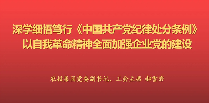 郝雪岩强调,学习《条例》,要从具体条文、问题导向、党建责任,延伸到掌握精神实质、注重问题整改、扛起使命任务上。常敲思想之钟、常紧纪律之弦、常存敬畏之心,不断提高党性修养和拒腐防变能力。农投生物党委班子要带头在这次党纪学习教育中,学出政治忠诚、学出坚强党性、学出敬畏戒惧、学出使命担当,把学习成效转化为领导企业发展的强大动力。