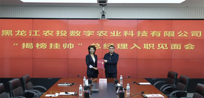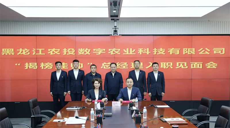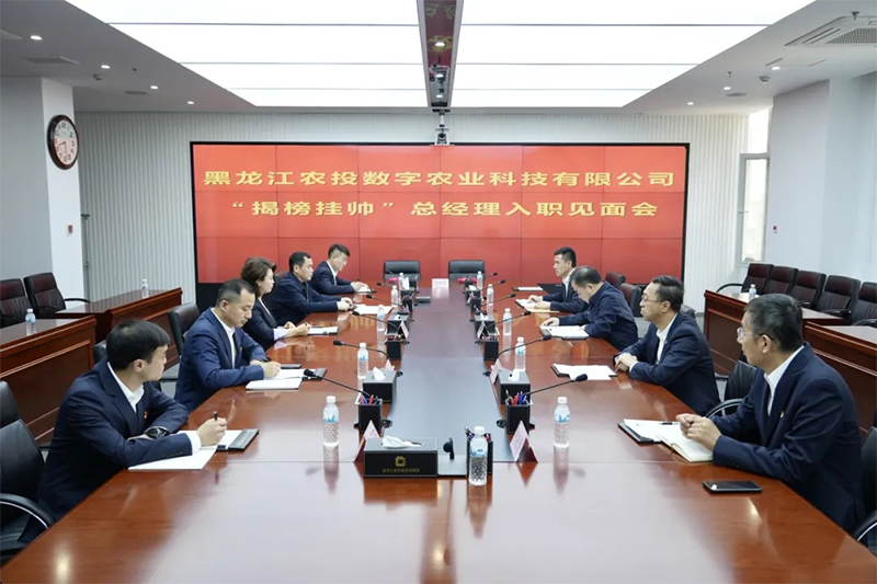 6月3日,九州网页版-九州(中国)有限公司(以下简称农投集团)权属企业黑龙江农投数字农业科技有限公司(以下简称数字农业)在集团总部举行了 “揭榜挂帅”总经理(职业经理人)入职见面会,集团党委书记、董事长常玉春,党委副书记、工会主席郝雪岩出席见面会。