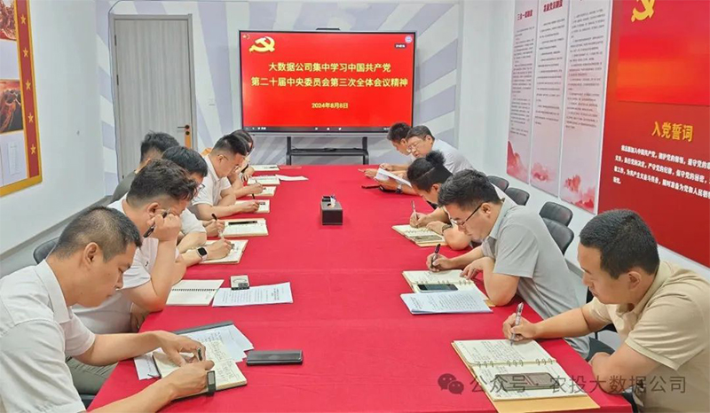 专栏介绍 7月18日,中国共产党第二十届中央委员会第三次全体会议胜利闭幕。农投集团总部及各所属企业迅速掀起学习宣传党的二十届三中全会精神热潮,结合党中央决策部署和公司实际情况精心抓好贯彻落实,确保党的二十届三中全会精神在农投集团落地生根、开花结果。 8月8日,大数据公司召开专题学习会议,传达学习党的二十届三中全会精神,并深入研讨学习宣传贯彻全会精神的工作举措。大数据公司领导班子和全体党员参加会议。 会议对大数据公司学习宣传贯彻党的二十届三中全会精神进行动员部署,传达了习近平总书记关于《中共中央关于进一步全面深化改革、推进中国式现代化的决定》的说明和《中共中央关于进一步全面深化改革、推进中国式现代化的决定》等有关精神,相关人员紧紧围绕“全面深化改革”和“推进中国式现代化”两个核心主题,全面且系统地为与会人员解读了二十届三中全会精神。 会议强调,大数据公司上下要原原本本学习领会习近平总书记重要讲话和二十届三中全会精神,全面准确把握进一步全面深化改革的主题、重大原则、重大举措、根本保证,把学习贯彻全会精神与巩固拓展主题教育成果、善始善终抓好党纪学习教育紧密结合起来,确保党的二十届三中全会精神在大数据公司落地见效。 会议要求,要发挥模范作用,大数据公司领导班子以及全体党员干部要切实发挥模范带头作用,坚持先学一步、学深一层,深刻领会全会精神实质。持续加强学习,提高政治站位,增强思想自觉,牢固树立进取意识与责任意识。注重学用结合,紧密结合自身工作岗位需要,将全会精神学深悟透、落到实处。强化宣传引导,积极宣传党的二十届三中全会精神,营造浓厚学习氛围。 下一步,大数据公司将建立长效机制,把学习好贯彻好党的二十届三中全会精神作为当前和今后一个时期的重大政治任务来抓,定期组织学习交流活动,将全会精神的精髓转化为推动企业高质量发展的强大动力。 通讯员:大数据 马新洋 编辑:李博然 编审:侯庆雄 樊成博