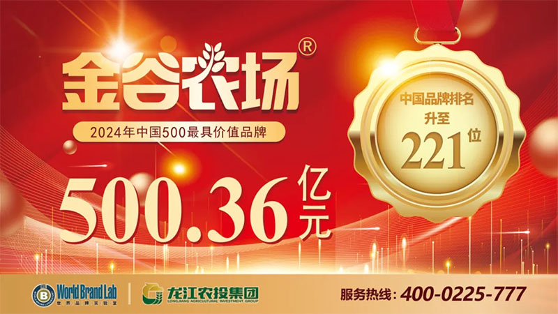 天下金谷,金谷为养。“金谷农场”倡导人与自然生态的和谐共融发展,建立新农业、新农作、新品质、新生活标准。“金谷农场”以供应国民餐桌绿色健康食品为定位,以倡导品味新生活为品牌诉求,以服务14亿国民为己任,为社会提供健康绿色食品。2024年“金谷农场”以品牌价值500.36亿元位列中国500最具价值品牌排行榜第221位,位居中国农业品牌第八位,连续五年上榜中国500最具价值品牌排行榜。