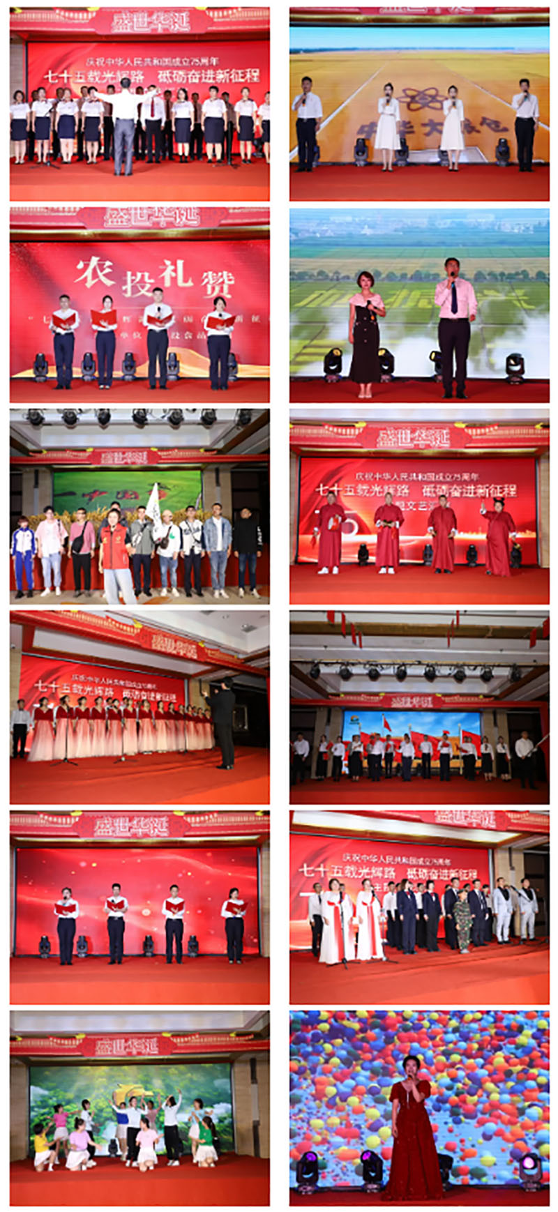 情景演讲《端稳中国饭碗 龙江农投有底气》体现了农投集团在服务全省农业高质量发展的道路中走在前列,勾勒出“四个农业”蓬勃向上的崭新篇章;诗朗诵《农投礼赞》展现了农投集团为龙江农业强省建设贡献农投力量农投方案的决心与态度;歌曲《共同的向往》唱出了唯有坚定不移地走和平发展、改革创新之路,唯有将个人梦想融入国家梦想,将个人奋斗融入民族奋斗,才能在新的历史节点上,继续书写中华民族新的辉煌篇章;情景剧表演《中华大粮仓》展现农投集团始终坚持贯彻国家粮食安全战略工作部署,保障粮食生产稳定发展,为维护祖国粮食安全作出了积极贡献......