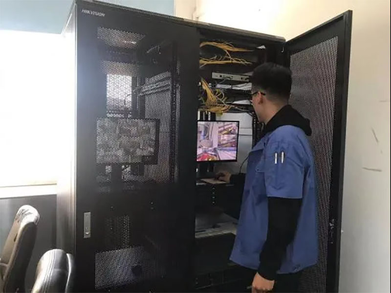 保管员清扫粮面卫生确保粮仓内干净                                 安全保卫部员工检查灭火器