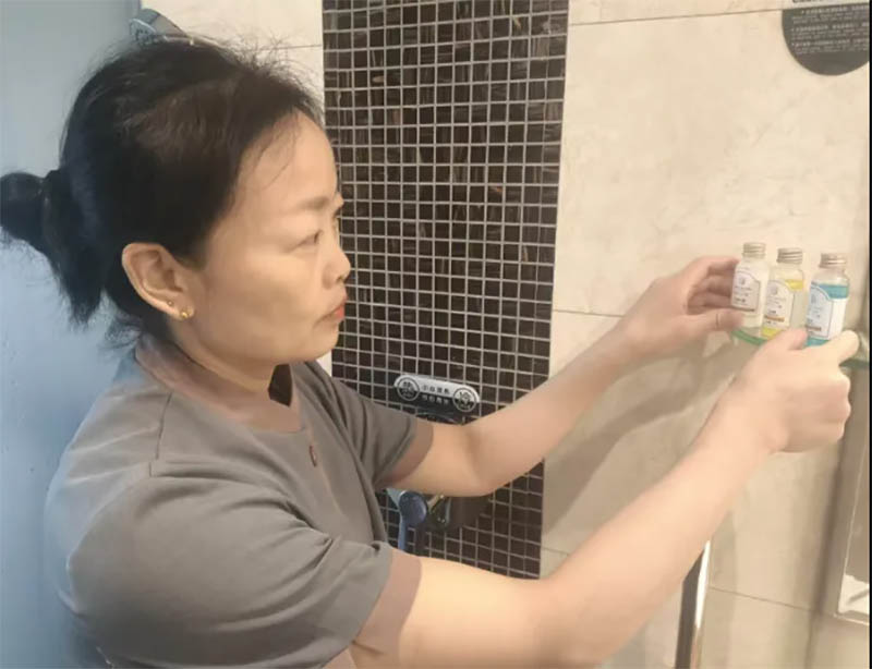 还有这样一群可爱的人,他们是金谷商务清扫员,坚守岗位、默默奉献是他们的座右铭,用他们的“舍”和“离”换来客人出游的便利,工作加班加点,不辞辛劳地打扫房间、更换床单被罩、补充日用品,为客人提供整洁舒适的住宿环境。