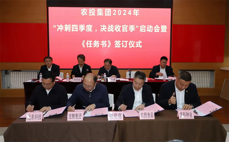会上,传达了党中央国务院、省委省政府有关会议精神;通报了集团当前主要财务指标完成情况;宣读了《农投集团“冲刺四季度,决战收官季”工作方案》;部分企业现场领受并签订了《四季度任务书》;重点权属企业作了表态发言。
