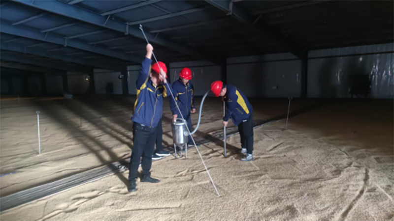 △黑龙江盛宝金谷检查库内粮情,确保储粮安全。
