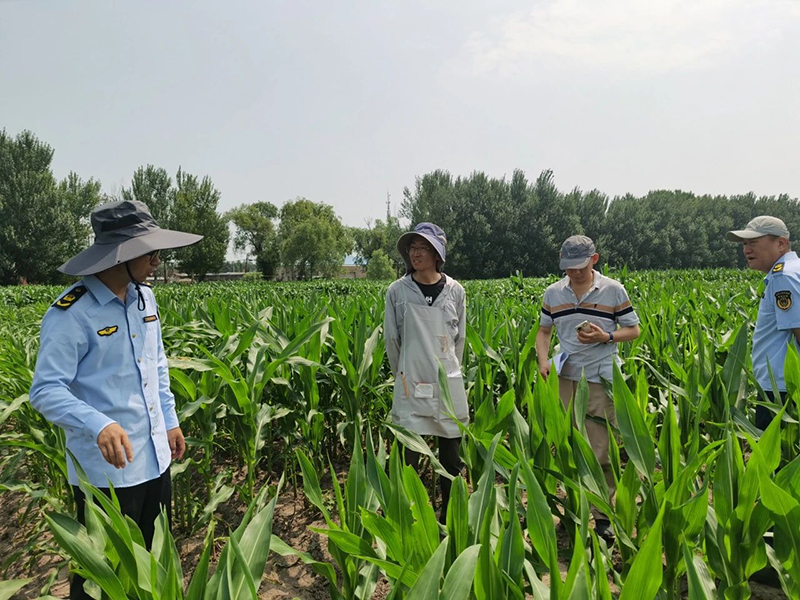 7月10日,哈尔滨市植保植检站专家洪峰、安浩一行来到龙科种业哈尔滨试验基地,深入田间一线开展农作物病虫害防控及新品种试验示范的专项指导工作。