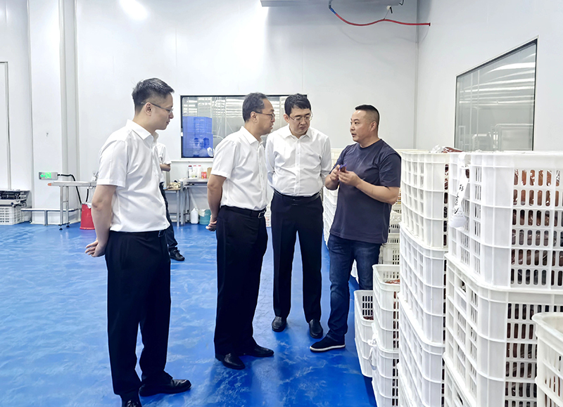 郝雪岩一行先后参观了入园企业双惠食品公司、北大荒北豆公司生产车间、牛肉传“黑土优品”中央厨房及农投食品集团电商运营中心,深入了解园区在农产品销售、电商业务拓展、物资存储运输等方面具体情况。