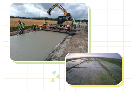 当前,项目已进入关键冲刺期,项目部紧扣“保质量、抢进度、守安全”核心要求,科学倒排施工计划:细化分解每日作业任务,明确责任分工与时间节点,形成“清单化管理、按表推进”的攻坚格局。通过优化人力机械配置,实行轮班作业机制,百余建设者昼夜奋战,30余台套挖掘机、摊铺机等设备高效运转,田块整治、灌渠衬砌、道路铺设等工序无缝衔接,以高效履约全力冲刺竣工目标。